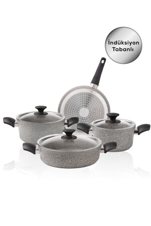 (منيز) (بيوجرانيت) (الشمس الرمادي) (جديد) (سبعة قطع (مجموعة) (أدوات الطبخ 153.03.08.08.115