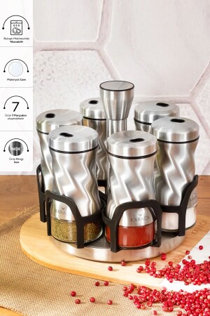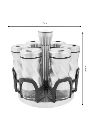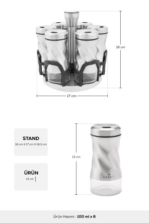 مجموعة توتوري من كاراكا من طراز MNZ-Karaca İnox 7 Piece Round Glass Spice Set تضم 6 أكواب توابل 100 مل (13 سم) 1 Stand Spice (18 x