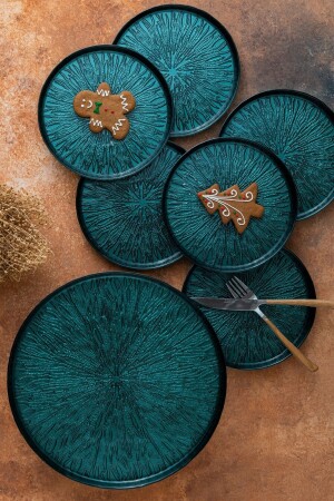 MNZ-Karaca Teo Green 7 قطعة كعكة / مجموعة فطائر مجموعة تضم 6 لوحات كعكة (32 سم) 1 مواد القائمة: الزجاج. غير مناسب لغسل الصحون.