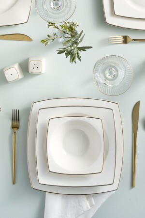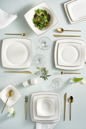 (منيز جيمي) 57 قطعة عشاء عظمي جديد لـ 12 شخص ذهبية 153 03. 08. 4151