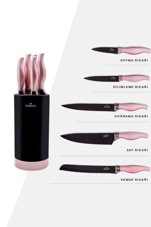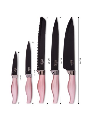 MNZ-Karaca Rosegold 6 Piece Knife Set Set Set Set محتويات 20 سم سكين الخبز 13 سم سكين القص (للتقطيع والقص) 20 سم سكين