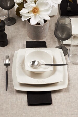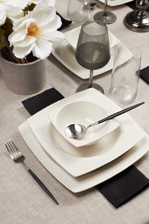 (MNZ-Siera Matte Black Square Dinner Set) 24 قطعة لـ 6 أشخاص (TY032024F956A0000000AOV100)