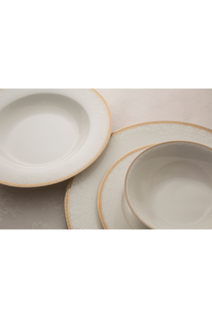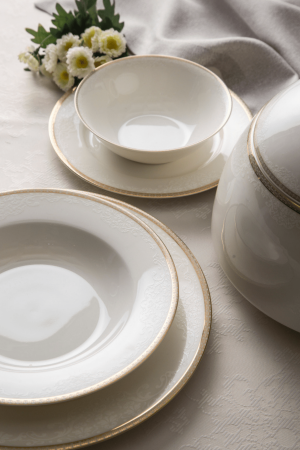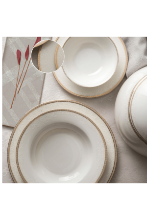 مجموعة عشاء ريفا الجديدة 60 قطعة لـ 12 شخصًا مجموعة تضم 12 لوحة خدمة 12 لوحة عميقة 12 لوحة كيك 12 كوبات الحساء 2 لوحة قارب صغير