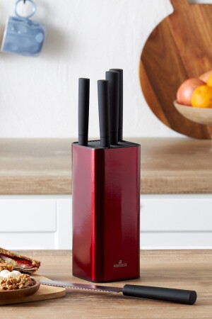 MNZ-كاراكا غرامي الأحمر 6 قطعة السكين مجموعة مجموعة المحتويات سكين الطاهي (32 سم) سكين القص (32 سم) سكين الخبز (32 سم)