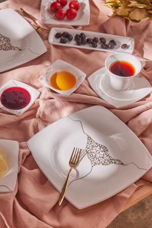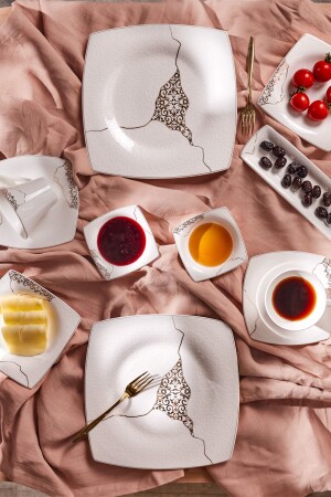 64 Parça 12 Kişilik Platin Modern Krem Kahvaltı Takımı