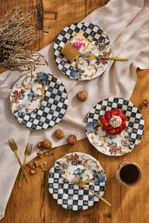 MNZ-Emsan Victoria 4 قطع طقم كيك المعدل المواد: مجموعة البورسلين محتويات: 4 طقم كيك
