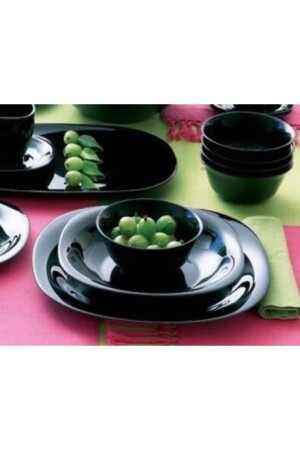 منتج من علامة لومينارك. تناول عشاء 6 قطع لكل شخصين. 2 قطع من 27 سم في الأسود. طبق الخدمة. 2 قطع من 21 سم. طبق عشاء مخبوض.