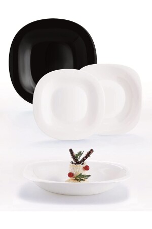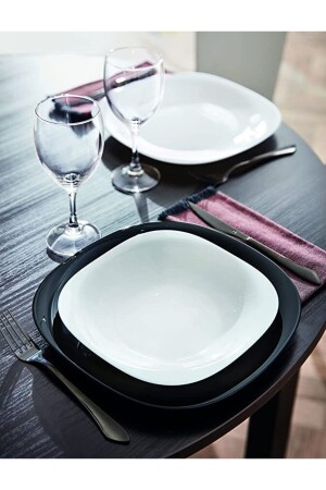 سلسلة MNZ-Luminarc Carine. يتم إرسال 6 أطباق خدمة أسود 27 سم و 6 أطباق عشاء أبيض عميقة 21 سم. يتكون من 12 قطعة