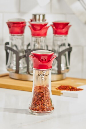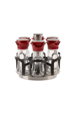 MNZ-Karaca Nori Round 7 Piece Spice Set Set Red Set يحتوي على 6 وعاءات للاستعمالات العذرية (120 مل) المادة: الزجاج غير مناسب لغ
