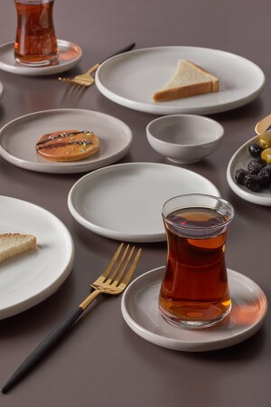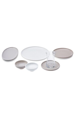 64 Parça 12 Kişilik Platin Modern Krem Kahvaltı Takımı