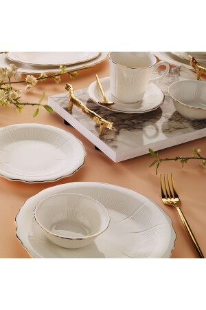 64 Parça 12 Kişilik Gold Modern Krem Kahvaltı Takımı
