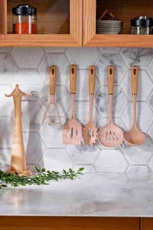 MNZ- Karaca Milley 6 Piece Serving Utensil Beige Set محتويات: Colander 35 سم ملعقة المعكرونة 33 سم مقطوعة العنق 34 سم مشير 29 سم