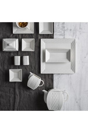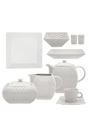 64 Parça 12 Kişilik Platin Modern Krem Kahvaltı Takımı