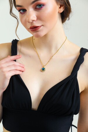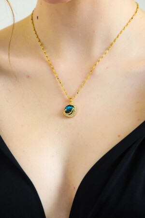 من النساء 316 لترات فولاذ فولاذ معدني الذهب حجر زيركون الأزرق نصف قمر الأرض الكوكب الفضاء الكوكب العنق KKİTHGEZ001