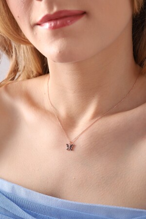 من 925 سبرينغ الفضة سلسلة وردة مزققة حجر أسود فراشة عنق النساء KKK-YYY-099