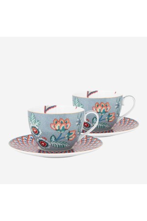 مهرجان الزهور من "MNZ" كوب شاي البورسلين الأزرق مجموعة 280 مل