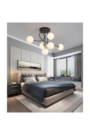 Pare Model Modern Spor Siyah 4'lu Glop Füme Camlı Avize