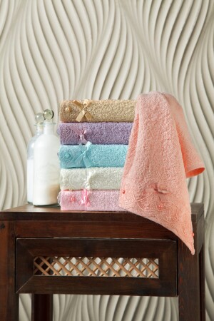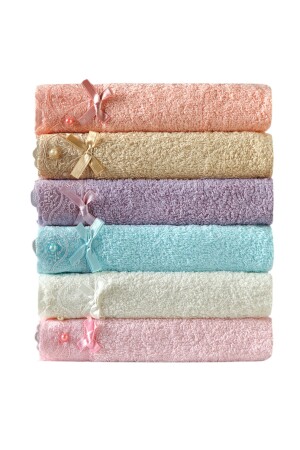 Güpürlü Saten Işleme Desenli Kutulu Lüks Çeyizlik 50x90 6'lı El Yüz Havlu Seti
