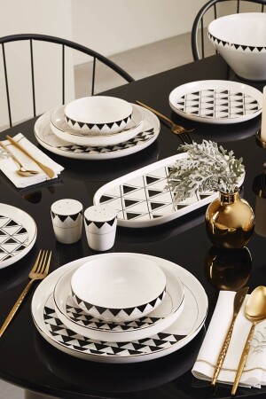 (MNZ-Matte) عشاء أسود / فطور مجموعة 30 قطعة لـ 6 أشخاص dmtaks202330