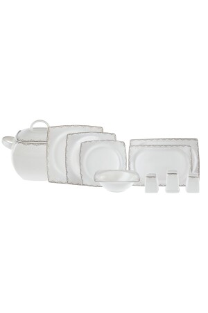 MNZ-Emsan العظام الجميلة اللوتس الجديد 61 قطعة عشاء مجموعة للـ 12 شخص مجموعة محتويات 12 طبقات 12 طبقات كعك 12 طبقات عميقة 12 أكواب حساء 1