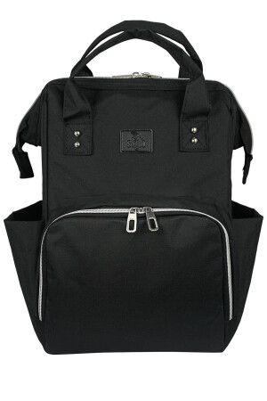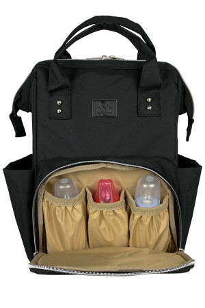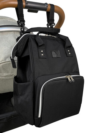 Biberon Termoslu Sıvı Geçirmez Puset Askı Aparatlı Siyah Füme Çizgili Anne Bebek Bakım Sırt Çantası