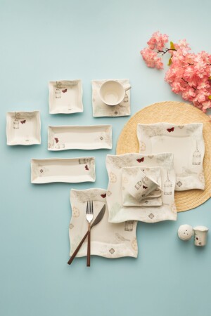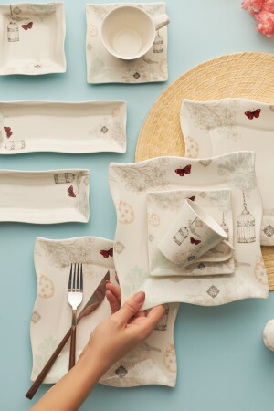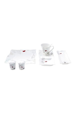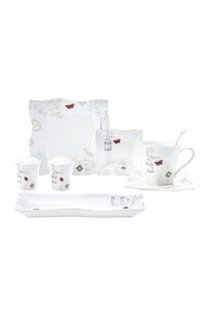 م.ن.ز-كاراكا شارلوت 32 قطعة إعداد الإفطار لـ 6 أشخاص المربع المجموعة المحتوى: 6 طبقات، 6 كوبات الشاي، 6