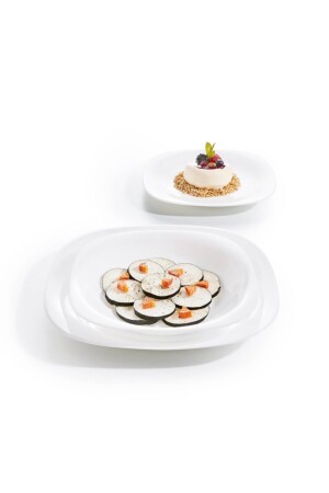 منتج من علامة لومينارك. مجموعة عشاء 6 قطع ل 2 أشخاص. 2 قطع من طبق 27 سم في الأبيض. 2 قطع من طبق عشاء عميق 21 سم. 2 وعاءات حس