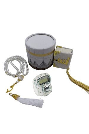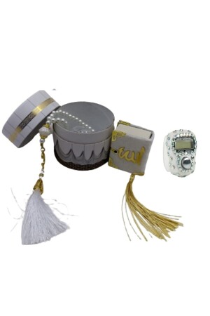 Mini Silindir Kutulu Mevlit Hediye Seti Kabeli Beyaz(mini Kuranı Kerim-inci Tesbih 99-taşlı Zikirmat