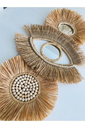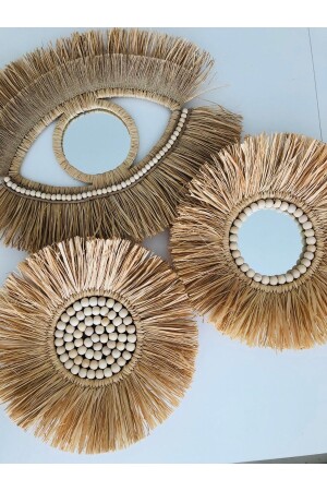 م.ن.ز. مصنوعة يدوياً بالكامل من رافيا من ألياف الموز الطبيعية بنسبة 100٪. مرآة العين عرضها 45/50 سم. مرآة مستد