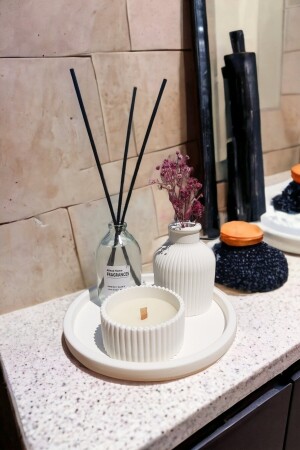 MNZ-بيضاء اللون التصميم الخاص شمعة رائحة ومجموعة لوازمة الحوض المثلث