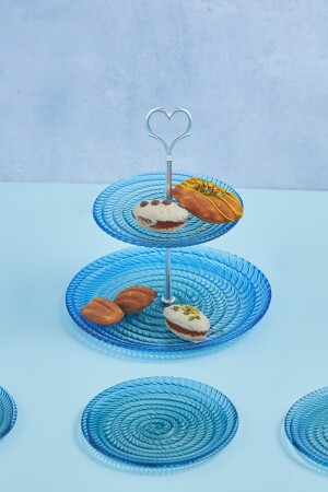 MNZ-Karaca Mini 7 قطع كعكة زجاجية/بستري/محلوي مع مقعد مع مجموعة محتويات: 6 لوحات 15 سم 1 طبقة حامل الكوكي 15-21 سم