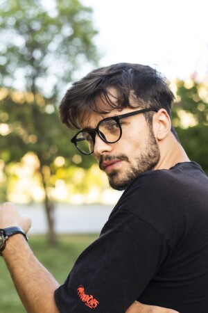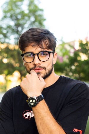 Unisex Siyah Yuvarlak Çerçeveli Mavi Işık Filtreli Gözlük