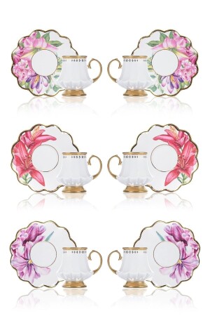 نمط زهرة من النوع من النوع من النوع من الزهور من النوع من الذهب 90 مل كوب قهوة من الفورسلين مجموعة لـ 6 أشخاص 0208 HXF-22-0