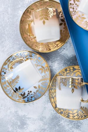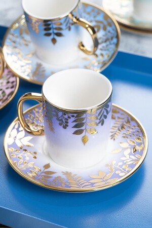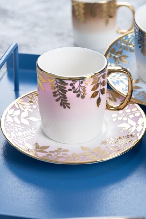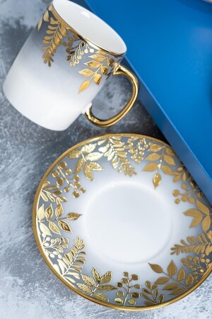MNZ-Acar Adelina نمط الزهور الذهبية اللون المزلق 90 مل كوب قهوة مجموعة 6 أشخاص 0227 مجموعة محتويات 6 كوبات و 6 كوبات و
