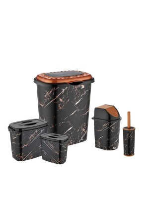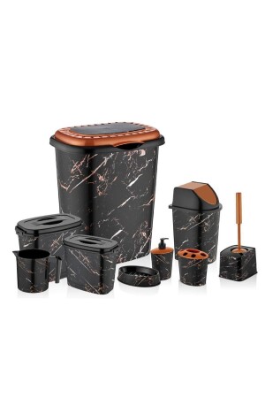 نمط من الرخام الأسود من MNZ 9 قطع غسيل الحمام مجموعة السلة القذرة + المطهر WC فرشاة كاملة مع الآخرين abn-2406221003-sy-9