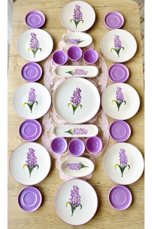 نمط MNZ-Sümbül 27 قطعة الفطور الليلي مجموعة مع طبق الشاي ل 8 أشخاص SÜMBÜL8-27