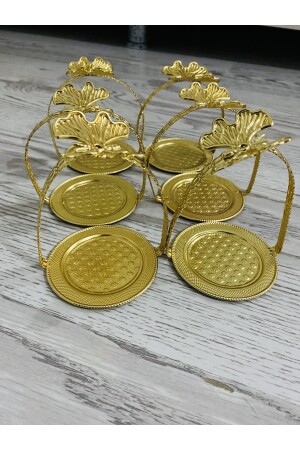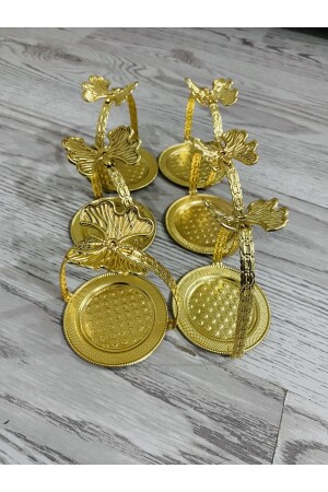 مـنـز - أزياء ذهبية مطليّة 6-قطعة مـاكارون حاملة مقهى جانب خدمة تركيّة ممتعة حاملة لوكس