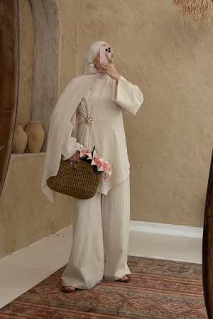 نوا بروش ملابس من الكتان الطبيعي بيج