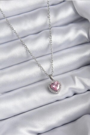 Taşlı kalpli Çelik kolye Portakal çiçeği yağı hediyeli