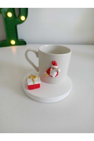 كوب قهوة من تصميم يدوي مع شخصية سانتا كلوس في السنة الجديدة. كوب 6 سم صحن 11 سم صناعة يدوية كوب قهوة من تصميم تذكارات التجهي
