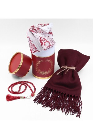المهدية الكلاريت الحمراء تافيتة الصلاة السجادة وذرة الزهرة المكلفة في صندوق خاص السلندر وملعقة لون شال هدية المكلف