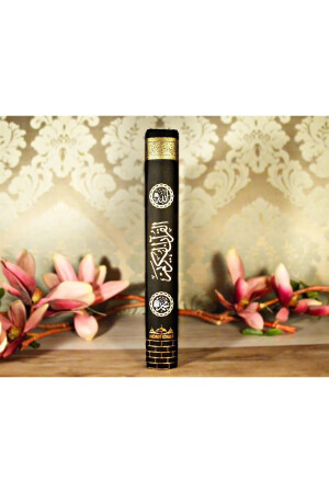 Hediyelik Kadife Kaplı Isme Özel Pleksi Desenli Arapça Cami Boy Kuranı Kerim Siyah