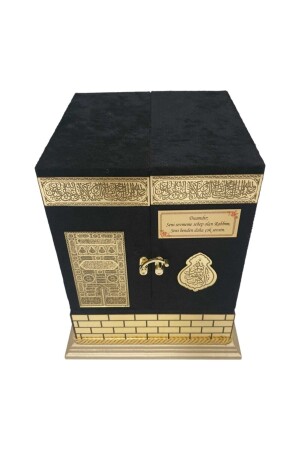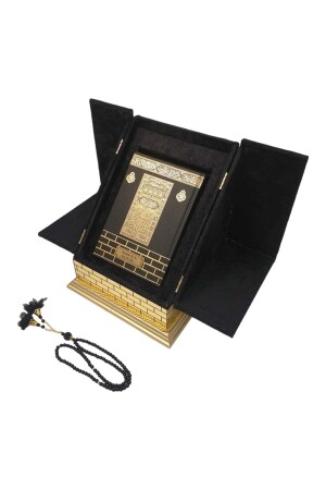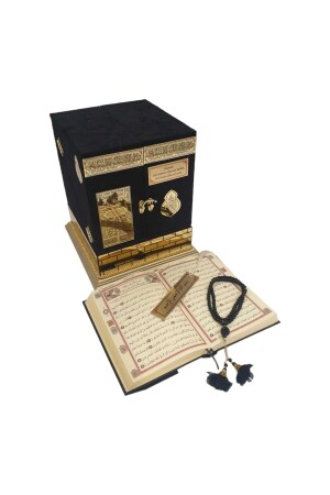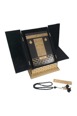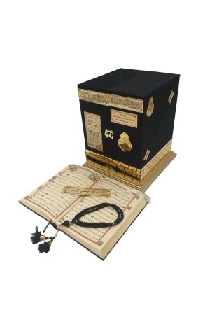 وصف المنتج: مجموعة القرآن المقدس ذات شكل كعبه. إنها 20 × 20 × 23 سم بحجمها ووزنها 2500 جرام. مصنوعة من مواد خشبية. مغط