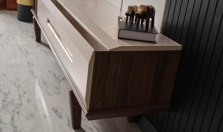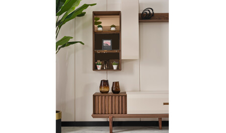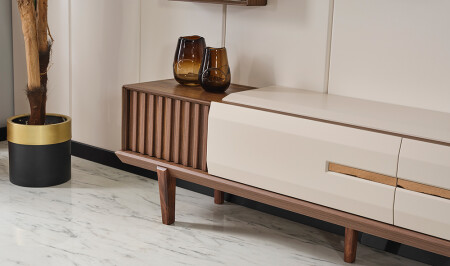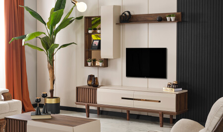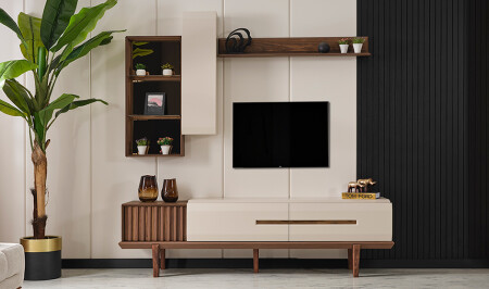 وحدة التلفزيون مع الدرج السفلي والرف العلوي والمنظمة