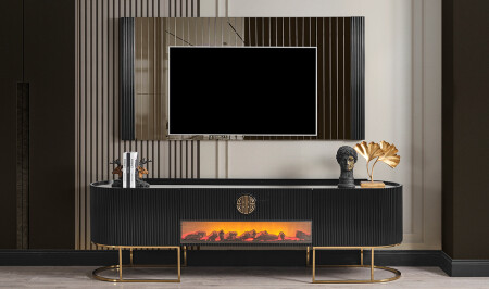وحدة تلفزيونية من "منز كراون" - الأسود - الذهب