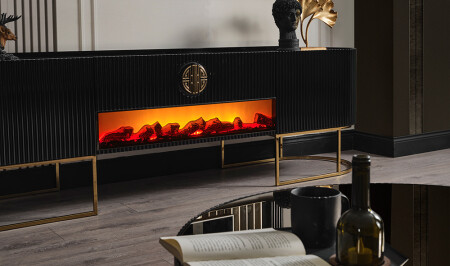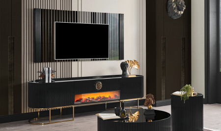 وحدة التلفزيون مع الغطاء السفلي - تأثير المدفأة والفريق العلوي