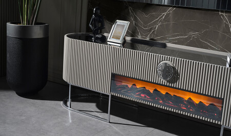وحدة التلفزيون مع الغطاء السفلي - تأثير المدفأة والفريق العلوي