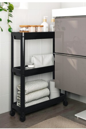 وحدة غرفية ذات عجلات من طراز MNZ 3 طبقات أسود رف حمام مطبخ رف خدمة طاولة منظمة DNZVSKN100B
