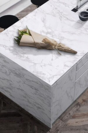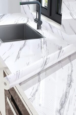 ورق جدار من طراز من المرمار (MNZ-Marble Patterned Self-Adhesive Foil-Kitchen-Bathroom-Countertop Wallpaper White ((60CMX
