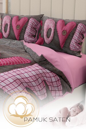 مـنز-مونهوم يوم الحب غطاء ملابس ملابس مزدوجة مجموعة 100% القطن ساتين 3D لمسة لطيفة من حبّي نوم سلمي 200 سم × 220 سم - الطب